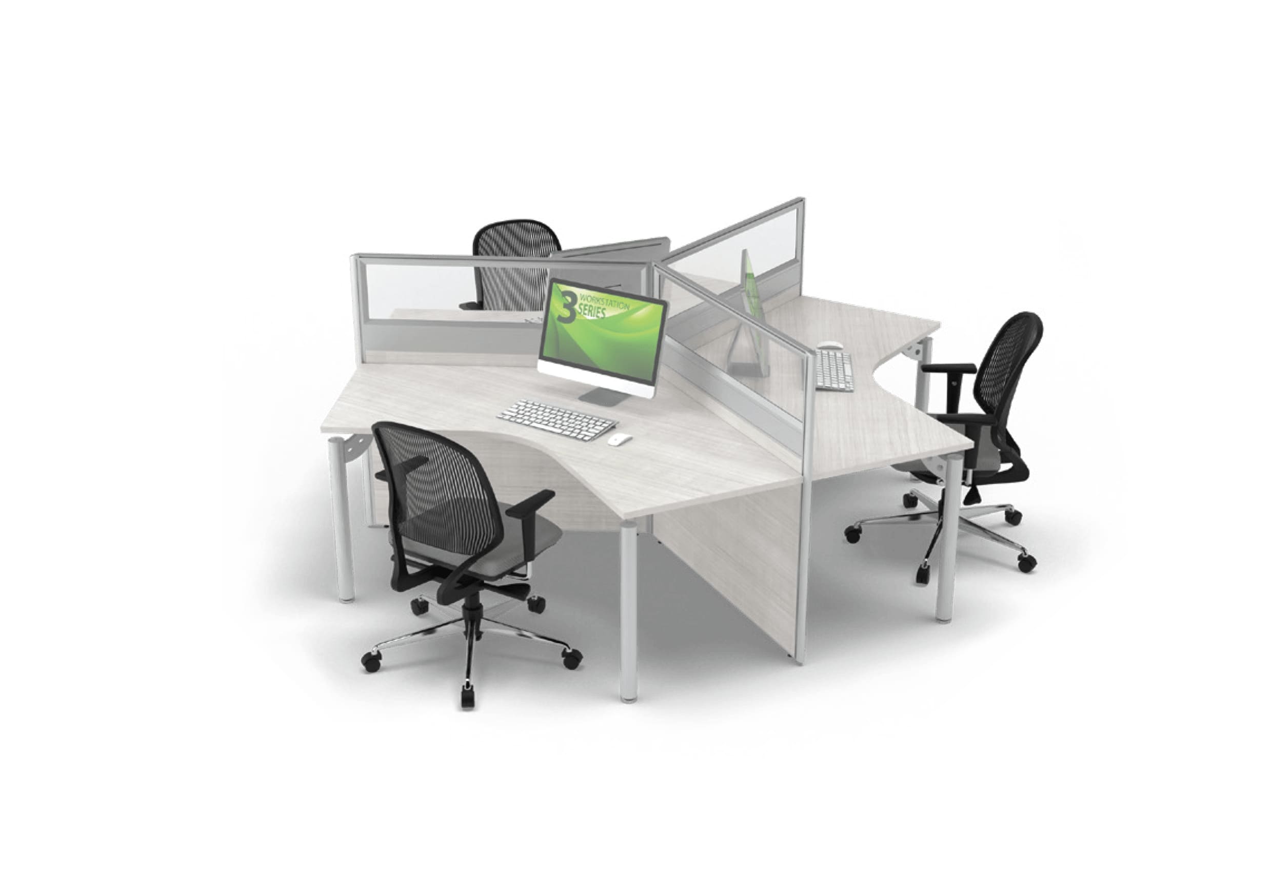 Meja Workstation RIONE K-4 Tipe A Partisi Seri 3 T.120 Panel Glass
